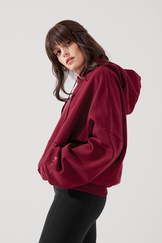 Boxy Boyfriend Hoodie - Vintage Crimson